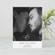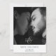 Minimalist and chic. This lovely wedding save the date card features a couple photo (ideally black and white) with a contemporary set of fonts in black. A white rectangle at the bottom sits on top of the photo. The back of the card includes optional text and website address. Leave this text box empty if no text is preferred.