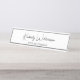 Professional and elegant white desk name plate featuring your name showcased in a chic signature script and your company or title in simple modern lettering.