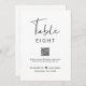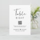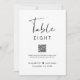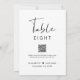 Chic wedding reception table number sign featuring "Table" in a stylish modern script, the table number in simple modern typography, your names joined together by a heart, your reception date, and a QR code linked to your website for guests to scan to upload photos or for other reasons.