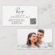 Chic wedding RSVP enclosure card that features "Rsvp" in a stylish contemporary script. Input your wedding website address to create a QR code that your guests can scan to RSVP online. The back features your photo overlayed with your first names and wedding date joined together with a heart.