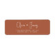 Modern terracotta return address label for your engagement announcements, save the dates, wedding invitations, thank you cards and newlywed correspondence featuring your first names in a chic white script and your address in classic white serif typography.