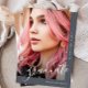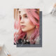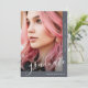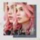 This beautiful graduation announcement features pretty light grey graduate script on a slate blue background, and two photos.