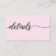 Chic Script Wedding Details Black and Pink Enclosure Card: Your Wedding Information in Style