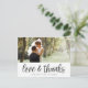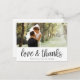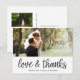 A modern photo thank you postcard designed to accommodate your favourite horizontal or landscape orientated wedding photo. "Love and thanks" appears along the bottom in black handwritten style script. Personalise with your names and/or wedding date beneath.