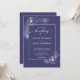 Chic Script White Floral Outline Navy Blue Wedding Invitation