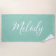 Chic Seafoam Green Custom Name Handwritten Script Beach Towel