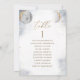 Help your guests find their table with this elegant silver and gold moons and stars celestial seating plan cards with guests names. Double sided cards so guests can look from both, front or back for their names. Clear space all around giving you the liberty to use clips or punch hole for hanging displays, or use table holder/frame. Delicate watercolor celestial background with dainty gold and white stars and full moon on one side and a quarter moon on the other. Modern hand written calligraphy details. Stars, "table" and details in moons in faux gold foil. Please place one order for each of your table seating cards, add into your shopping cart and then return to add new names and new table number. Repeat the process until all your table numbers are done. Part of our" White, Gold and Silver Celestial Stars and Moon" collection with a variety of coordinating products available. Visit the entire collection at: https://www.zazzle.com/collections/gold_white_and_silver_celestial_stars_and_moon-119446192561160871
