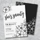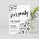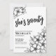 Chic Seventy Black White 70th Birthday Party Invitation. A fun but elegant 70th birthday party invitation with girly black and white flowers for the young at heart. A playful flower pattern frames a script typography "she's seventy" mixed with a more classic serif font. Celebrate seventy years of life with this beautiful botanical design. The fun part is you can change out ALL of the colours!! You can not only change the background colours and font, but you can change the lines for the flowers as well.