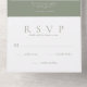 A modern elegant all in one monogram wedding invitation features shades of sage green with white typography. This invitation is perfect for those who desire a simple yet elegant wedding invitation. Your guests simply tear off the RSVP which has been preprinted with your return address and mail it back to you. You can handwrite your guests name and mailing address on the front of the card