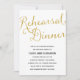 This elegant rehearsal dinner invite features gorgeous calligraphy and sparkly faux gold foil.