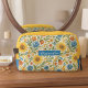 Elevate your daily style with a classic Italian flower pattern that features a botanical floral design. This design features a vibrant floral and leaf pattern in shades of yellow, orange, blue, red, and green. There is ample space for customisation, allowing you to add your name, monogram, or initials. This charming and modern decorative bag is perfect for use as a makeup kit or a school pencil case. It’s an ideal accessory for anyone looking to add a touch of romantic elegance to their daily routine. Whether you’re preparing for school, going on vacation, or simply want to incorporate some flair into your everyday life, this bag is a fantastic choice. Crafted for durability without compromising style, it’s a must-have for floral lovers and trendsetters alike.