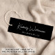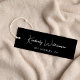 Elegant and chic custom clothing, accessories, jewellery, boutique, etc., black label hang tag with a minimalist vibe featuring your name or brand in a stylish white signature script. Add additional text below and on the back in simple modern white typography.