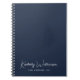Chic blue notebook with a minimalist vibe for your personal or professional business use featuring your name or brand showcased in a stylish white signature script. Add additional text below in simple modern white lettering.