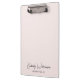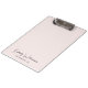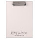 Chic light pink clipboard featuring your name or business brand in a stylish signature script. Add additional text below in simple modern lettering.