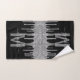 This modern glitter and glam bathroom towel set features a border of faux silver dripping glitter with sparkles at the top. In the centre is your monogram initial in grey with your name in an elegant hand lettered pale grey script on a background of black. Designed just for you by Extreme Tees!