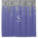 Chic Silver Glitter Drips Monogram Name Periwinkle Shower Curtain