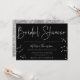 A chic, modern and elegant silver glitter script typography bridal shower party invitation with glitter sparkle confetti on editable black and a glittery silver background at the back. A luxury and elegant bridal theme.