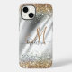 Chic silver Gold faux glitter monogram Case-Mate iPhone Case