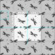 Elegant black and white printed fabric featuring a pretty dragonfly pattern. The design is made of ornamental dragonfly illustrations with silvery grey wings and dots in various shades of grey. Stylish material for your sewing, art and crafts projects.