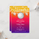 Elegant birthday invitation featuring silver hanging star, Christmas ball and string lights bulb on a multicolored paint gradient background.