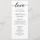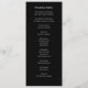 Personalise and customise this easy to use, editable wedding program template. Black and white, chic, modern, elegant and simple. Customise the bride and groom's names, location, wedding date, ceremony order of service, wedding party names (including bride and groom's parents, officiant, maid of honour, best man, groomsmen, flower girls, bridesmaids, ring bearer) personalise for your own wedding entourage. A thank you message can also be edited to personalise this with your own words for your guests.