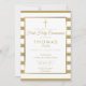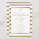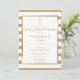 Chic gold and white striped First Holy Communion invitation featuring an elegant faux gold foil border framing your details set in chic typography with a simple gold cross. Designed by Thisisnotme©