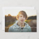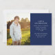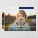 This full-bleed graduation announcement features a calligraphy script greeting in white. The modern design really allows your photo to shine by keeping the details minimal. **The text and photo on the back can easily be removed if not needed. Or you can change the text to be a personal message** All colours (script, text, and background colours) can also be customised by using the design tool.