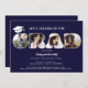 Chic Simple navy blue 3 photos script graduation Invitation