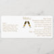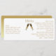 Modern minimalist skinny wedding reception menu done in a long skinny horizontal shape. The menu has a white background, on the front, with graphics of two filled champagne glasses, in the middle. Personalise the golden brown text for your wedding reception.