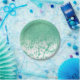 Chic Sparkly Mermaid Green Glitter Marble Ombre Paper Plate
