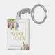 This chic and elegant keychain is designed as a favour or gift for your Maid of Honour. The beautiful design features gold lettering and border with a cluster of pastel spring flowers in the corners including pink roses, purple hydrangea, and white orchids, and calla lilies. Great way to thank the most important member of your bridal party for being a part of your wedding.