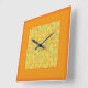A chic Square Wall Clock, with a mix'n'match pattern of golden daffodils and coordinating polka dots, from a handpainted watercolour design by Judy Adamson.
