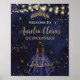 Chic Starry Night Navy Blue Dress Gold Quinceañera Poster