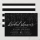 Our elegant bridal shower invitations in chic black and white feature a rich black background with strings of white lights across the top, and "bridal shower" in chic calligraphy script typography. Personalise with your bridal shower and registry details beneath in white lettering.