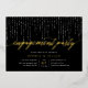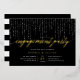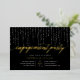 Our elegant engagement party invitations in chic black and white feature a rich black background with strings of white lights across the top, and "engagement party" in chic gold foil calligraphy script typography. Personalise with your engagement celebration details beneath in white lettering.