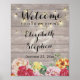 Elegant Vintage Modern Chic String Lights and Natural Rustic Wood Texture Background Floral Wedding Sign Poster.