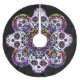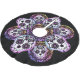A Christmas tree skirt for a Day of the Dead theme. Several ornate and colourful sugar skulls on colourful doilies on a black background. This can work for Halloween too. It can stay up the whole season. I love how pretty it looks with all the colours.