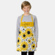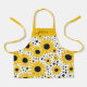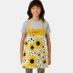 Modern kids apron with a sunflower pattern and a feminine, hand lettered script name. Personalise with your name.