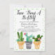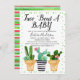 Cute fiesta themed taco bout a baby baby shower invitation featuring three potted cactus and some green watercolor dots. Great for a girls or gender neural baby shower.