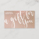 This is the perfect gift certificate business card for a trendy, stylish, girly, and modern businesswoman. This design features a simple white handwritten brush script typography on a faux printed sparkly gold glitter and taupe neutral tan ombre gradient glamourous and chic background. It's the perfect way to allow your customers to buy a gift for their family and friends and at the same time promote your business.