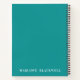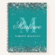 Elegant Stylish Monogram Teal Blue Green Script Name silver glitter notebook bordered in faux silver glitter for your new home office, administrative and professional work, back to school, artwork sketches, recipe notes etc. Choose from a variety of insert types including wide rule, college rule, and blank for sketching.