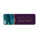 The left-hand edge of this elegant modern wedding invitation return address label features a teal blue watercolor agate border trimmed with faux gold glitter. The customisable text combines gold-coloured handwriting and copperplate fonts on an opulent deep purple background.