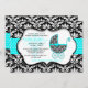 Chic Teal Polka Dot Damask Baby Shower Invite