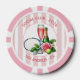 Serve style on and off the court with these Chic Tennis Social Club bridal shower poker chips. Designed with soft pink stripes, champagne, florals, and a luxe country club aesthetic, these custom casino chips are perfect for tennis-themed bridal showers, bachelorette parties, and preppy bride tribe celebrations.