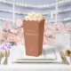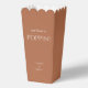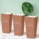 Delight wedding guests with a surprise midnight snack. This lovely wedding favour popcorn box features couple names and text in ivory against a chic terracotta ochre background.