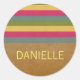 Chic Textured Stripes Customisable Stickers. This design features textured stripes on a distressed brown paper background. These grungy yet vibrantly coloured stickers may be customised with a name or other personalised text.