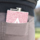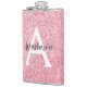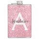 Chic and glam blush pink rose gold glitter sparkles metallic flask, with a large, white monogram initial and your custom name in an elegant grey script font. Personalise this trendy flask with your name or monogram initial. You can change the text colour and font style and size using the customise option.
