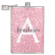 Chic & Trendy Rose Gold Glitter Sparkles Monogram Hip Flask