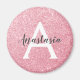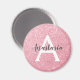 Chic and glam blush pink rose gold glitter sparkles metallic magnet, with a large, white monogram initial and your custom name in an elegant grey script font. Personalise this trendy magnet with your name or monogram initial. You can change the text colour and font style and size using the customise option.