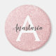 Chic and glam blush pink rose gold glitter sparkles metallic magnet, with a large, white monogram initial and your custom name in an elegant grey script font. Personalise this trendy magnet with your name or monogram initial. You can change the text colour and font style and size using the customise option.